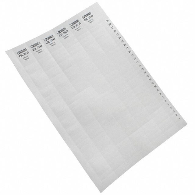 Manufacturer : Phoenix Contact Packaging : 266 per Sheet Series : ESL Part Status : Active Type : Label, Insert Legend : Blank Pitch : - For Use With/Related Products : CLIPLINE Series Color : White